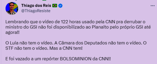 – Mas o episódio terá conseqüências também para outro protagonista: o jornalista que, como se fosse um furo da CNN, divulgou o filme com as imagens do general no Planalto no dia da invasão. Está definitivamente carimbado na testa como bolsonarista. Quem lhe dará crédito agora?