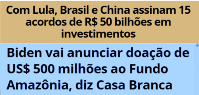 5 – Preocupados em demonizar Lula, comentaristas da Mídia perderam uma das noções básicas da análise política, as perspectivas futuras de uma determinada atitude. Lula foi primeiro nos Estados Unidos e Biden anunciou uma merreca de ajuda pra Amazônia: US$50 milhões.