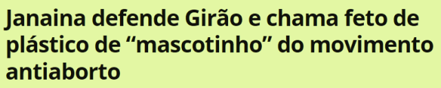 – Mascotinho? Se é verdade, o movimento antiaborto tem um jeito repugnante, sórdido, infame e imoral de lutar pela vida… Assim como os senadores Sérgio Moro e Damares Alves, que aplaudiram o ato do senador Girão.