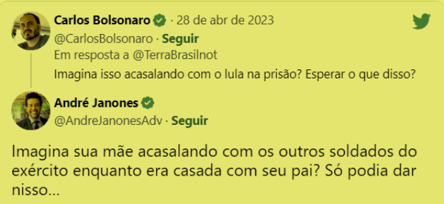 Carluxo escreveu acasalar (juntar-se animais pra procriar) ao se referir a Janja com Lula na prisão.
