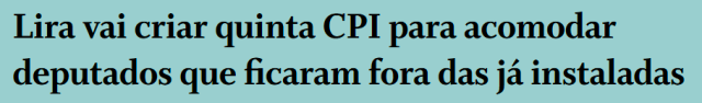 7 – Não tenham dúvidas: o próximo passo do Arthur Lira é propor um penduricalho qualquer pra deputado que participa de Comissão de Inquérito… Como dizem analistas políticos, eles estão com abstinência de verbas públicas após o STF proibir o Orçamento Secreto.