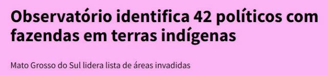 4 – Pois é… nossos ilustres e probos deputados estão deverasmente preocupados com a invasão de terras improdutivas e devolutas. Não com as invasões em si, pois 42 deles têm fazendas em terras indígenas, mas com a possibilidade de suas invasões também terem repressão policial.