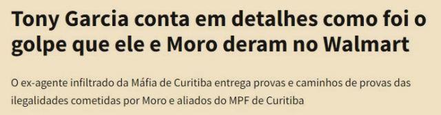 7 – O Brasil foi enganado pela grande imprensa e valorizou o ex-juiz Moro de modo errado! O homem que “faz a diferença” não fez qualquer diferença pro país, só pra Globo, mas conseguiu enganar uma das maiores empresas do mundo, o WalMart, supra sumo do capitalismo.