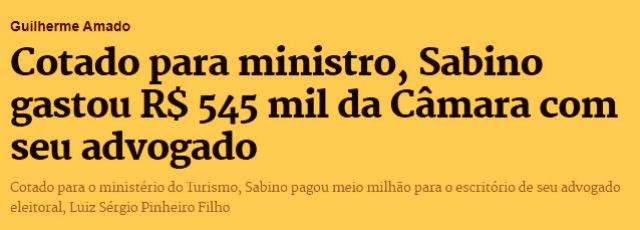 – ‘taí o indicado pela bancada do União Brasil pra assumir o ministério do Turismo: contratou o próprio advogado pra lhe prestar consultoria na Câmara. E nós pagamos o meio milhão de reais!