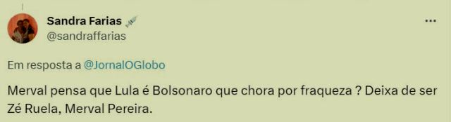 3 – É a glória! Merval Pereira, que os Marinho emplacaram como imortal na ABL, atingiu o ápice de sua carreira jornalística: conseguiu interpretar os sentimentos de um líder popular, que é presidente do Brasil pela 3ª vez! Lula não chora de emoção, mas por pressão do Centrão!