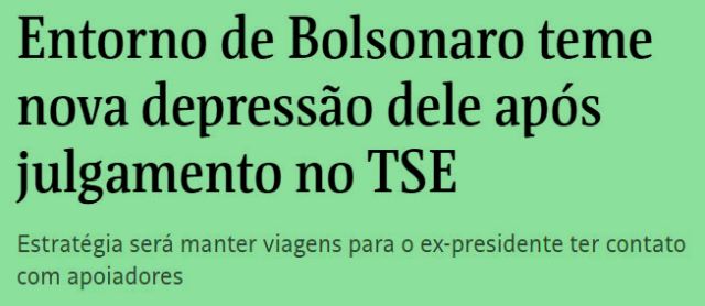 9 – É preciso ficar atento a este “novo temor” dos bolsonaristas quanto à depressão do ex-mitô. Segundo eles diziam e disseminavam pelas redes, ele ficou muito deprê após perder as eleições , se recolhendo no Alvorada. E a gente sabe o resultado desta depressão: