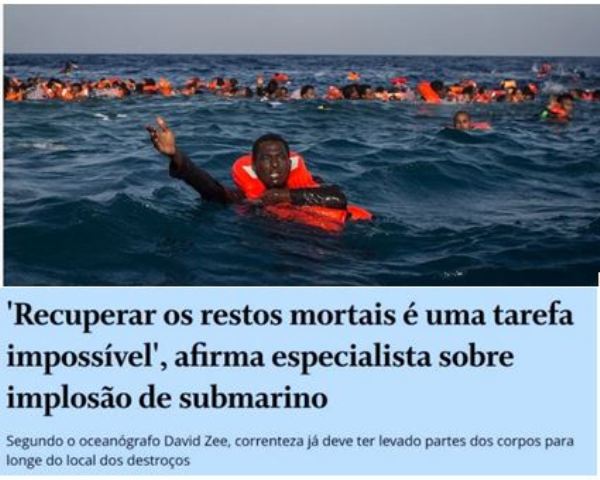 9 – 05 bilionários pagam 250 mil dólares pra ativarem a adrenalina de suas vidas vazias e se explodem no fundo do oceano. A Mídia se derrama em páginas e imagens, dados, análises, tentativas de explicações e comentários sobre a tragédia.