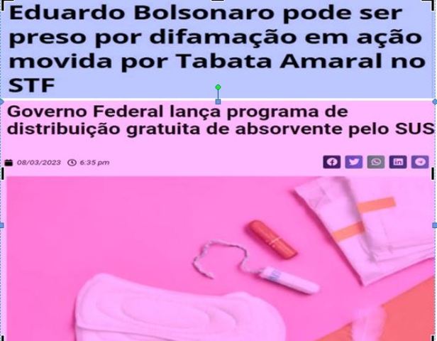 3 – A briga é de cachorro grande. A gente não entra, mas tem que ficar de olhos abertos porque no final quem paga a conta é o povo. Dudu 03 acusou Tábata Amaral por defender a distribuição de absorventes pra mulheres pobres pra beneficiar seu tutor político. – Jorge Lemann é um dos donos da Procter & Gamble, fabricante de absorventes e ficaria muito feliz com grandes aquisições por parte do governo. Tábata quer a prisão de Dudu 03, mas acho que não vai dar em nada… O perigo é o governo parar de distribuir absorventes!