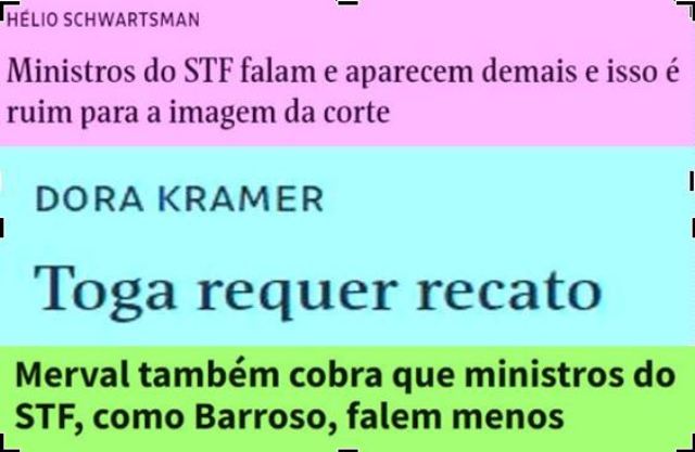 -…quando do mensalão e do petrolão, muito requisitados por microfones e câmeras. Neste novo período lulista, que se mostra alvissareiro, Suas Excelências precisam preservar a imagem da Corte? Estranho, né mesm…?