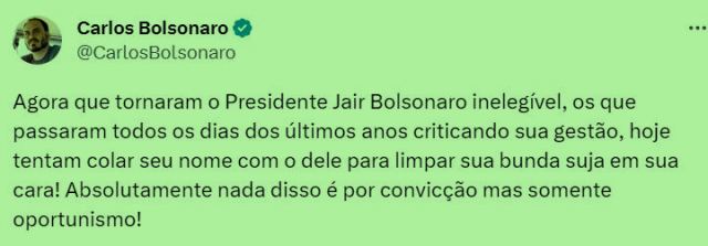 3 – Carluxo continua postando pra entendidos em suas redes. Talvez pra desviar a atenção do noticiário alusivo a alguma peripécia passada sua. Desta vez, o mistério está em quem ele está chamando de bunda suja: seu pai ou os que se agarram a seu saco?