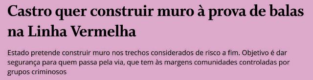 -…que não me deixam mentir. Pois é um muro que o governador do Rio está querendo construir na Linha Vermelha. Não duvido que o governador Zema siga o exemplo…