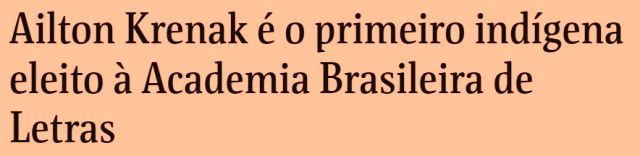 7 – Deve ter sido um duro golpe pros bolsonaristas que, como o ex-mitô, acha que “grande parte não sabe nem o que é dinheiro!” Ailton Krenak, um índio, pô..a!*, foi eleito pra Academia Brasileira de Letras… Vai participar das tertúlias literárias com Merval Pereira e Sarney…