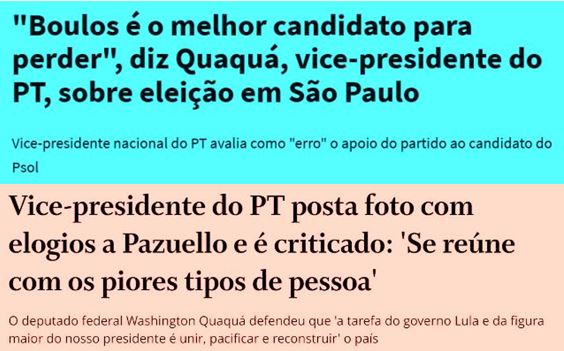 – Tantos anos depois, o PT assume um governo de reconstrução e união e, mostrando amadurecimento político, fecha acordo com Boulos, do PSOL, para ser seu candidato em São Paulo. Quaquá, seu vice-presidente, não gosta… ele prefere gente como o Pazuello. O PT nem cogita sua expulsão!