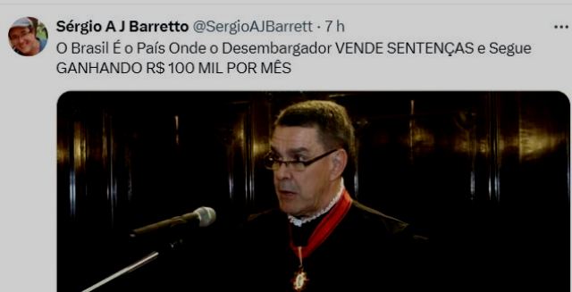 11 – Um desembargador foi condenado pelo Conselho Nacional de Justiça por organizar um esquema de venda de sentenças em seu gabinete do TJ/TO. A sentença foi a mais pesada: aposentadoria compulsória com vencimentos proporcionais. Viva o Brasil!