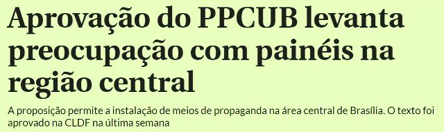 5 – O PPCUB, projeto de grande interesse do especulador, desculpe, governador Ibaneis Rocha, foi aprovado pela Câmara Distrital, permitindo a total deturpação do plano urbanístico de Brasília. Liberaram a altura de prédios no Plano Piloto, setores destinados…