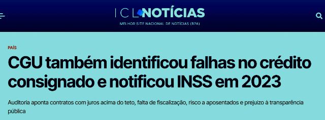 5 – O 1° relatório da CGU sobre as maracutaias no INSS, divulgado em fevereiro, indica que aposentados foram roubados com descontos não autorizados para suas associações e em empréstimos consignados contraídos com instituições financeiras. Curioso é que a imprensa…