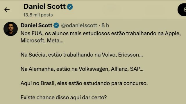 5 – Nos Estados Unidos, na Suécia e na Alemanha os alunos mais estudiosos são contratados e recebem salários como empregados das grandes multinacionais. No Brasil, eles são estagiários com salários de estagiários com direitos reduzidos pela legislação trabalhista…