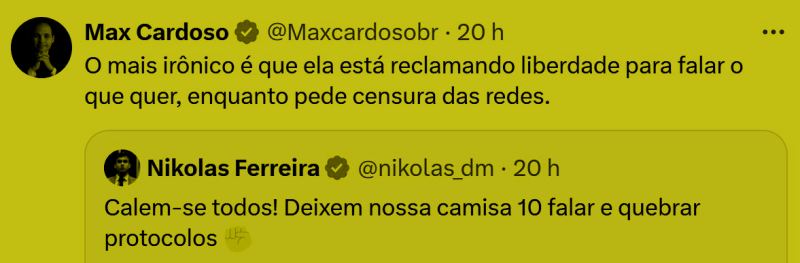 – Que venha a CPMI ou a CPI do INSS… Botar algumas Excelências contra a parede é uma das poucas atitudes que os brasileiros têm para defender a democracia.