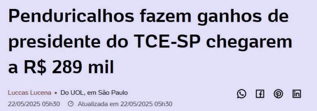 – Mas juízes, políticos, autoridades têm que entender que eles têm muita sorte dos brasileiros serem tão passivos. Só isto explica a paz num país em que 60% da população ganha até 01 salário mínimo (R$1.518,00) por mês e um único juiz ganhe R$290 mil!