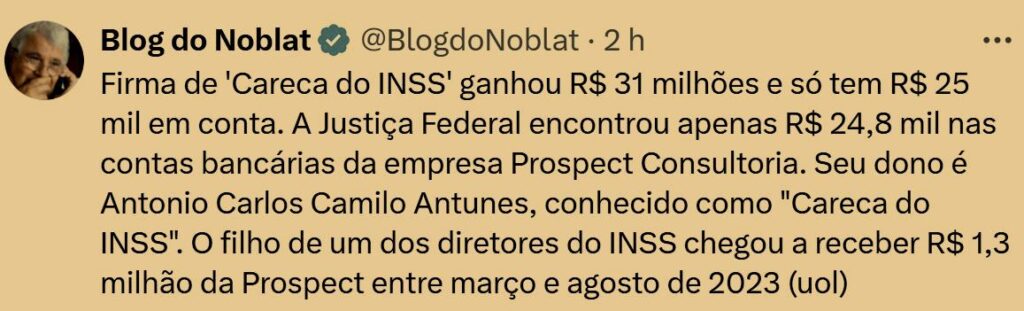 – Minha dúvida é se os investigadores vão se aprofundar nos descontos indevidos relativos aos empréstimos consignados. A Febraban não vai dar um piti? E ameaçar o governo com uma crise especulativa?