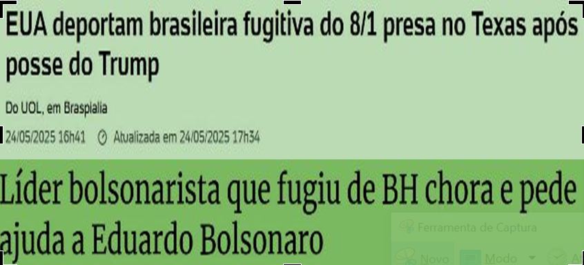 – Chegou ao Brasil e foi levada à Superintendência da Polícia Federal em Fortaleza, pois havia um mandado de prisão em aberto contra ela. Já o líder bolsonarista em Minas é investigado, com sua ex-mulher, por uma série de golpes financeiros em Beagá. Tutti buona gente!