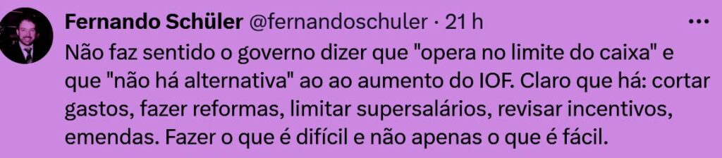 – E, de outro, sucatear o SUS e privatizar as escolas públicas, a previdência e a segurança. Como o Brasil é uma democracia, parlamentares aprovariam projetos pra acabar com supersalários, incentivos fiscais e suas próprias emendas?