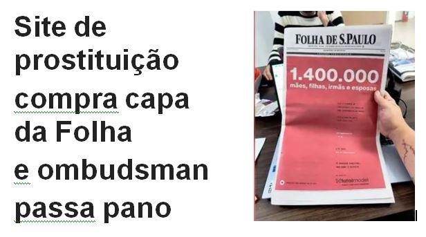 -…despautério pra conservadora e puritana família brasileira. Em tempos de redes sociais é apenas uma questão de concorrência pelos milhões movimentados no mundo do sexo. Qual será a próxima capa pioneira da Folha? A foto de uma bunda com um cartaz escrito o preço?
