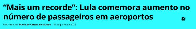 7 – A ANAC divulgou relatório informando que houve um aumento de 10% no número de brasileiros voando pelo país em relação a 2024. Foram 59 milhões de passageiros e mais milhões ainda pelos aeroportos. Mas não sei se Lula devia comemorar.