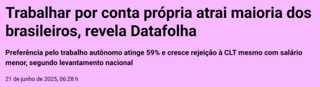 9 – Esta pesquisa deveria ser confrontada com o outro lado. Que entrevistasse velhinhos e velhinhas que hoje recebem o BPC. Fato é que num país desigual como o Brasil, a maioria destes jovens, que economistas e analistas chamam de empreendedores, não serão…
