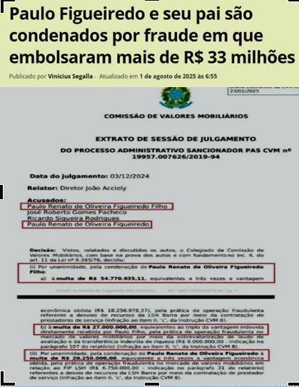 -…comprovadas pela CVM (processo n° 19957.007626/2019-94) que condenaram ele e o pai por fraude no mercado imobiliário, transferência indevida de riqueza, desvio de recursos e enriquecimento ilícito, safadezas de quando se associaram à Trump pra construir hotel no Rio.
