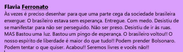 – Mas é claro que é este povo que elege quem ele quer que o represente, e isto é que me entristece profundamente. Em 2018, concorriam o ex-mitô e Haddad… e quem este povo elegeu? Estupidez, desinteresse ou inconsciência política? Há termo de comparação entre um e outro?