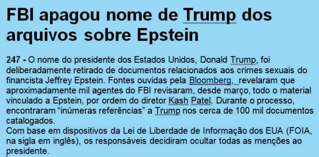 -…de Donald Trump com o escândalo sexual do bilionário Epstein. O que me impressiona é que a grande base do trumpismo, a América profunda, religiosa, conservadora, de um fundamentalismo doentio, permaneça apoiando-o fanaticamente.