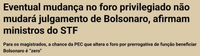 7 – A propósito, o ora prisioneiro domiciliar, também proibido de manifestar-se em suas redes sociais, era totalmente contra acabar com o foro privilegiado para deputados e senadores. Insinuava ele, com razão, que atrasaria tanto os julgamentos que eles nunca seriam punidos.