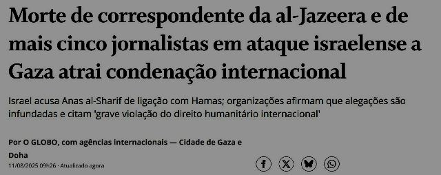 -…pelos militares israelitas. Desde outubro de 2023, 192 jornalistas foram mortos em Gaza, 03 vezes mais que nas 02 guerras mundiais. Ditaduras precisam proibir a liberdade de imprensa, mas há outras formas (músicas, por exemplo) de condenar a censura. Há judeus fazendo isto?