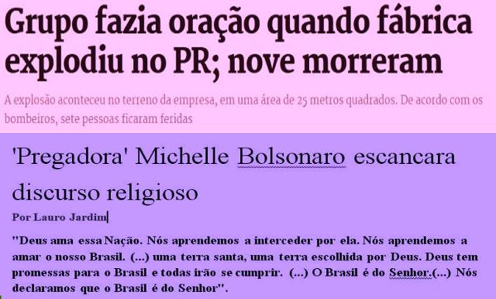 – Também gostaria de ouvir alguma palavra de consolo pelas 09 vítimas que oravam pedindo a proteção de Deus no momento da explosão da pregadora Michelle, tão confiante em “Deus como juiz” quando faz proselitismo político pelo país.