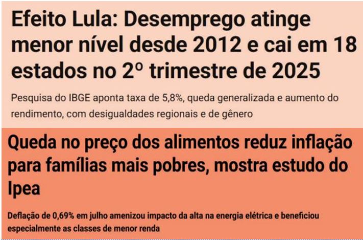 12 – A imprensa familiar mantém suas desconfianças em relação à situação econômica e política do Brasil, com seus analistas não criticando o pacote pra socorrer os exportadores, vítimas da pressão política do Trump. Não é bem o que desejavam os barões da imprensa.
