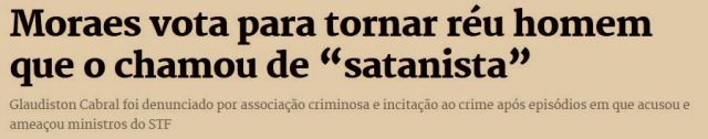 7 – O Ministério Público denunciou um dos recalcados bolsonários ativos nas redes sociais por críticas e ofensas aos ministros do STF, tendo até acusado Alexandre de Moraes, em vídeo, de praticar “rituais de magia negra com sacrifício de crianças”.