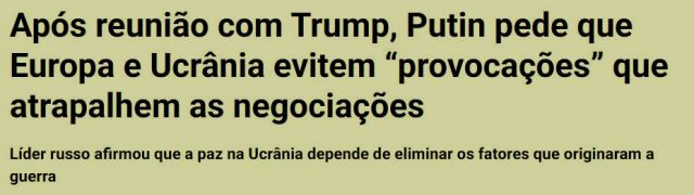 2 – As análises são praticamente unânimes: muito salamaleque, muito rapapé, mas, o objetivo da ‘ reunião de cúpula’, o encaminhamento de um acordo de paz, foi ilusório. E eu tenho pra mim que os dois senhores da guerra selaram um acordo entre eles, ao qual se juntará Xi Jinping.