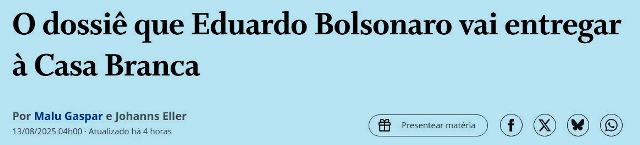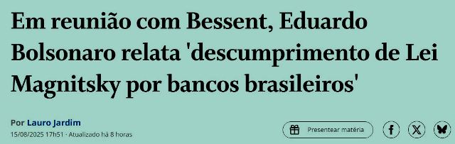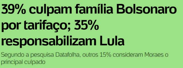 -…fazem, ora!) como não os disseminam. Sinto muito dizê-lo, mas eles estão vencendo a guerra exatamente porque fazem isto! Hoje, quem forma e informa o povo são as redes. E o resultado é este aí: Lula/Xandão são mais culpados pelo tarifaço que o clã!