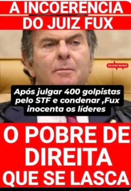 8 – Ainda sobre o mais novo herói bolsonário: apesar de insistir que estudou em colégio e faculdade públicas pra se identificar com as classes populares, e lembrar que viveu a ditadura e conhece suas mazelas e seus efeitos deletérios, Fux é membro da elite fascista e preconceituosa.