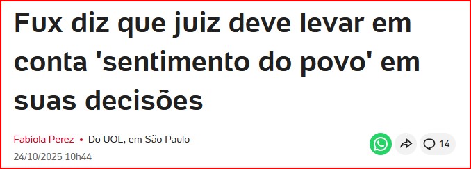 3 – A afirmação do ministro Fux é uma babaquice irresponsável e inaceitável, mais ainda por ser defendida por um juiz da Suprema Corte. A letra fria da Constituição pode ter nuances interpretativas, mas não pode ser manipulada ao sabor dos ventos que sopram da população.