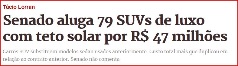 – Mas, por razões sobejamente conhecidas, um e outros não fazem a mesma pressão sobre os demais poderes da República. O que permite ao Senado cometer esta extravagância. Que logo será imitada pela Câmara… e pelo Supremo!