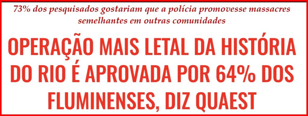 3 – Há inúmeras interrogações ainda em relação à Operação Contenção deflagrada pelas forças policiais fluminenses semana passada, no que foi a maior chacina no Rio, uma cidade pródiga em chacinas (nas favelas e periferias). Desconfia-se muito da motivação da Operação.