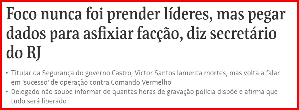 -…subs e assessores e chefes planejou uma operação para invadir os morros que sediam a cúpula do CV nacional não pra prendê-los e retomar o território, mas com objetivos que seriam muito mais exitosos e menos letais se fossem realizados pela inteligência policial, sem riscos de enfrentamento?
