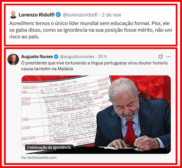 – O retirante e metalúrgico que chegou a Presidência do Brasil 03 vezes não tem diploma universitário. Mas já recebeu diplomas de doutor honoris causa de 41 universidades no mundo todo, por suas contribuições à sociedade, mesmo sem ter completado o doutorado acadêmico. Inveja mata, viu?