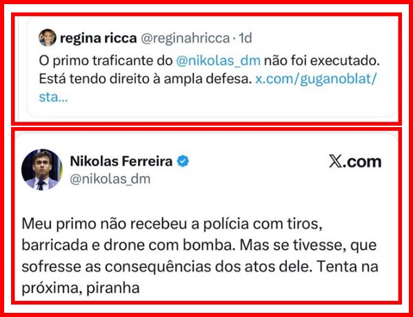 – Interessante é esta associação sempre presente em membros da direita radical em que a postura fascista sempre tem alguma conotação sexual. Ele não chamou a mulher que o criticou de bandida (o tema era tráfico) e sim de piranha (p.ta*, que pega qualquer um). Freud explica?