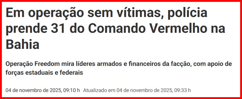 3 – A Folha divulgou relatório sobre os 117 mortos na Operação Contenção nos Complexos da Penha e do Alemão. Apesar das muitas entrevistas das autoridades cariocas se parabenizando pelo sucesso da chacina, fato é que não havia mandado de prisão ou…