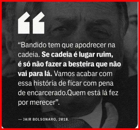 6 – Eu sei que ainda há muitos bolsonaristas iludidos que não admitem que eu o chame de bandido. Para eles, tudo é invenção de petistas e comunistas ou de Satanás, que não quer que o Escolhido governe a nova Terra Prometida. Mas os fatos são eloquentes.