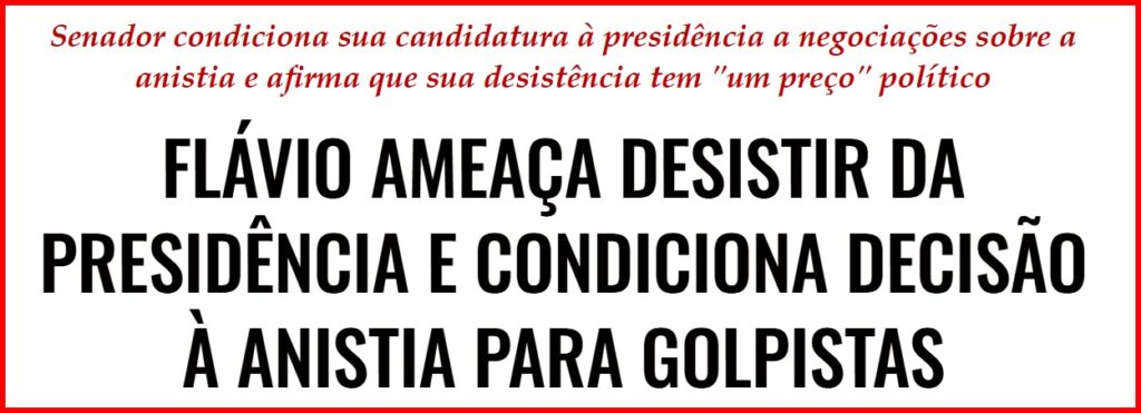 – O ungido por Messias já riscou o giz no chão aos primeiros sinais de narizes torcidos para sua candidatura e anuncia um “preço” pra desistir da corrida eleitoral. A anistia não sai… quem sabe um triplex no Leblon?