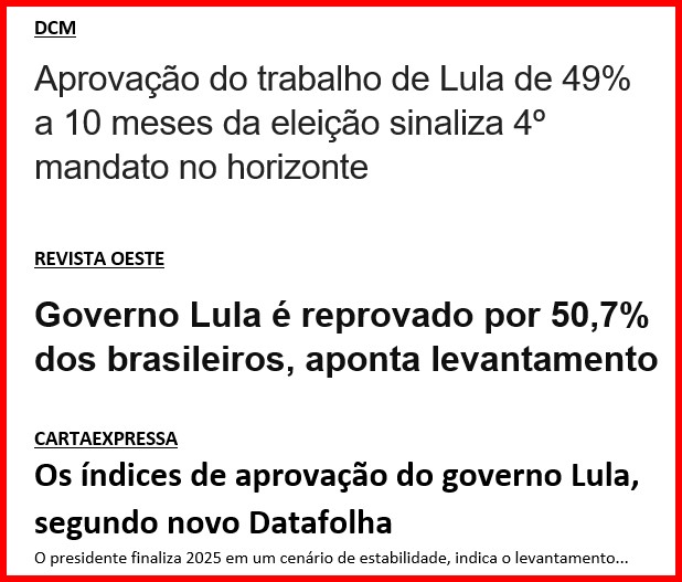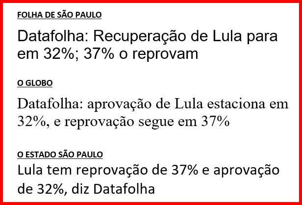 5 – Para aqueles que ainda leem jornalões para se informar sobre política e não apenas sobre esportes, diversão e crimes: a grande imprensa brasileira sempre teve lado e não é aquele que a Folha apregoou em passado não muito distante (de rabo preso com o leitor). Pesquisas recentes:
